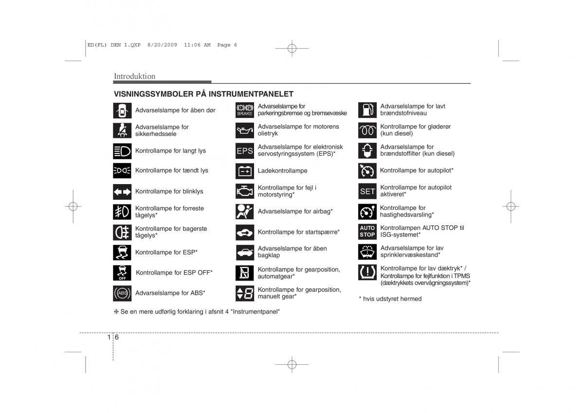 Kontrollampe for ESP* Advarselslampe for åben Advarselslampe for lav