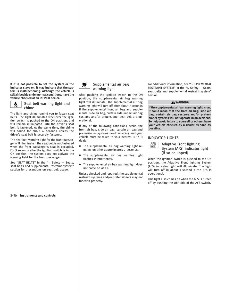 when the front passenger’s seat is occupied.● The supplemental air bag warning light re-System (AFS) indicator light