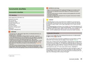 Automatisk växelväljarspärr Den automatiska växellådan i bilen är elektroniskt styrd. 1pp- och nerväxling mel-
