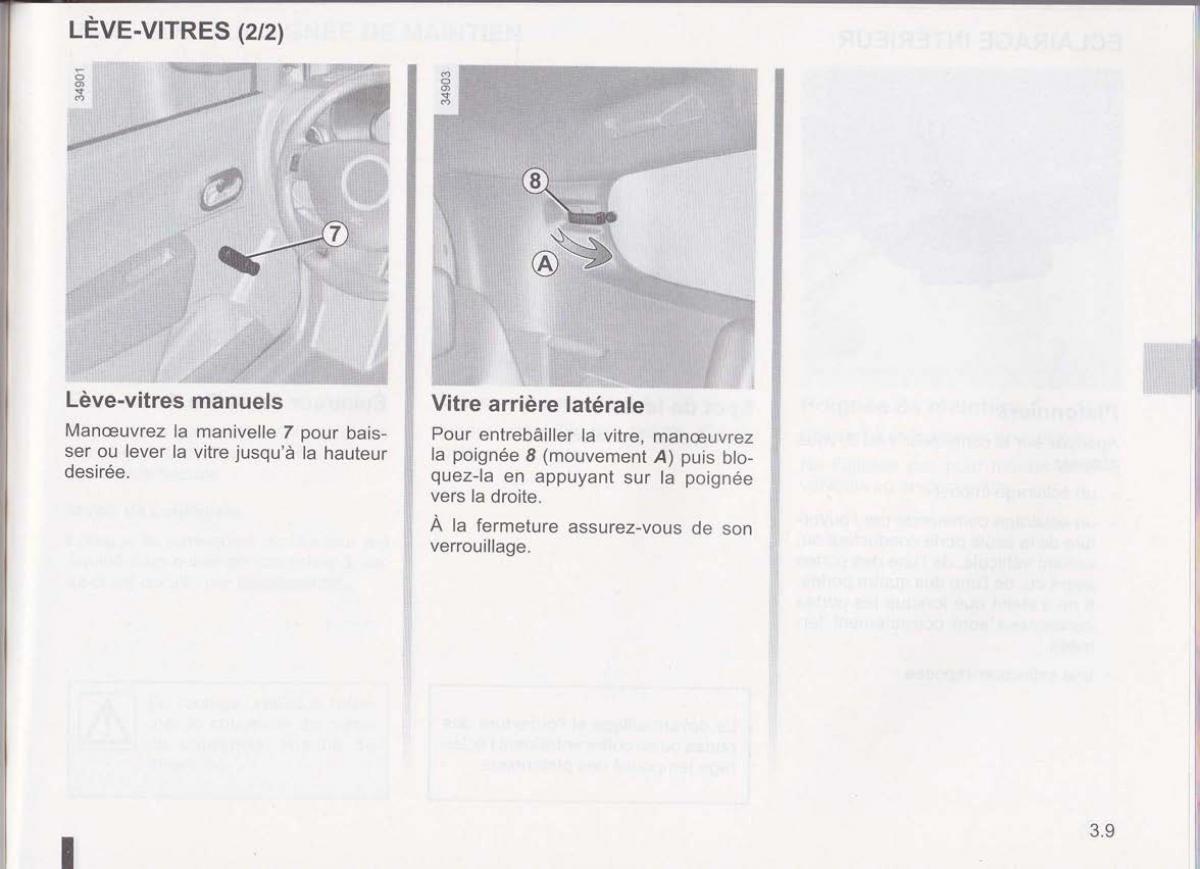 Manæuvrez la manivelle 7 pour bais-Pour entrebâiller la vitre, manceuvrez