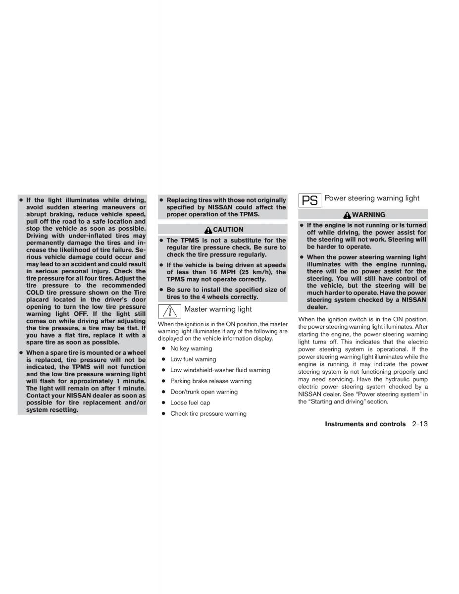 ContactyourNISSANdealerassoonas NISSANdealer. See “Power steering system”in