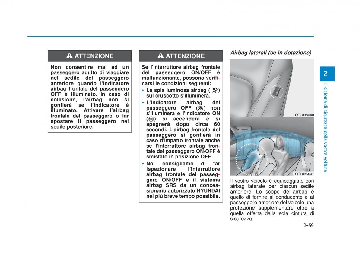 ATTENZIONE ATTENZIONE Airbag laterali (se in dotazione)