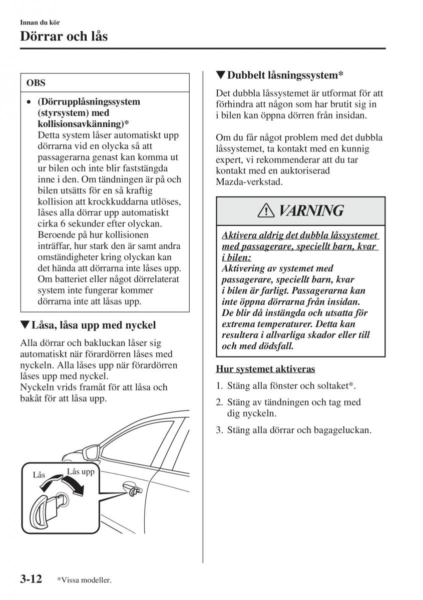 owners manual Mazda 6 - year of production: 2012 - Mazda 6 III instruktionsbok SE