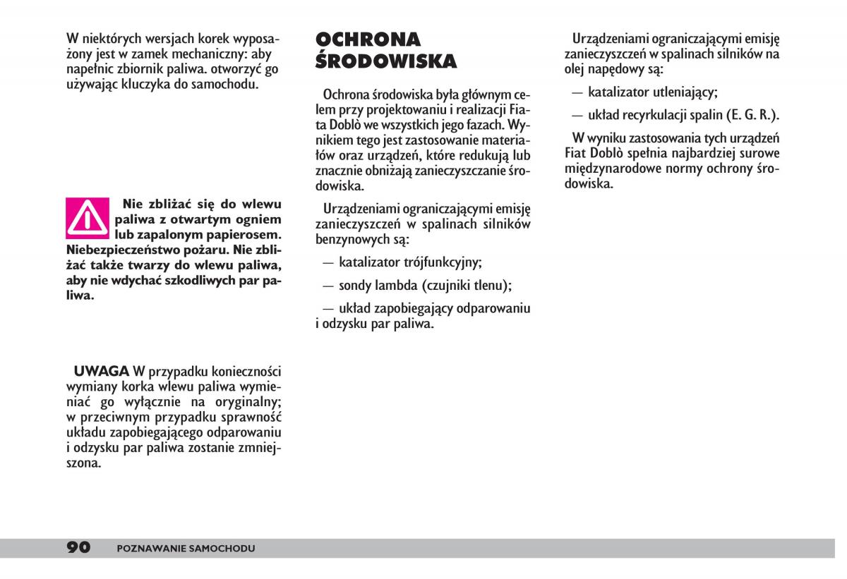 owners manual Fiat Doblo - year of production: 2000, 2001, 2002, 2003, 2004, 2005, 2006, 2007, 2008, 2009, 2010 - fiat Doblo I 1 instrukcja obslugi PL