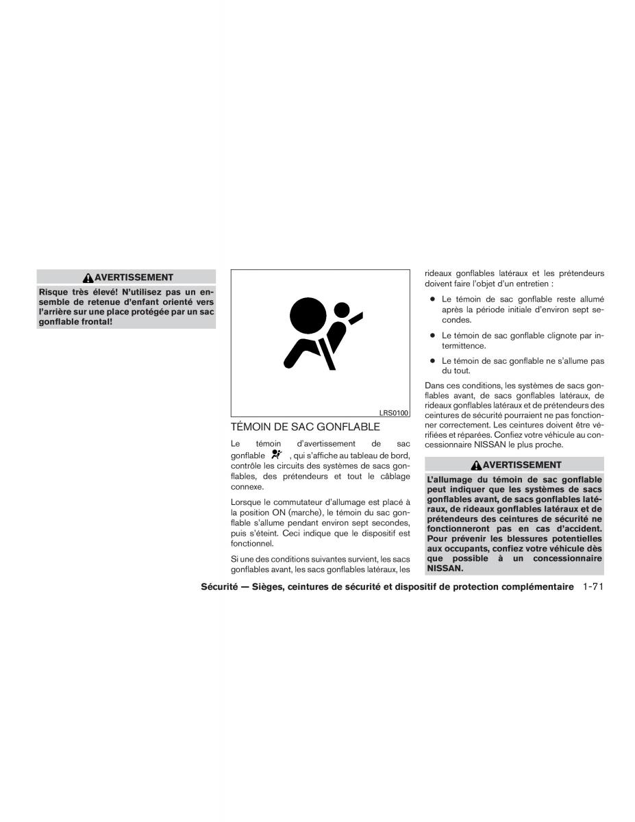 Sécurité — Sièges, ceintures de sécurité et dispositif de protection complémentaire 1-71
