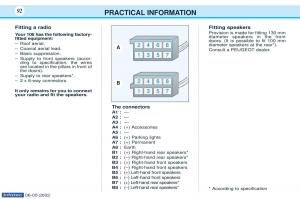 from owners manual to the vehicle Peugeot 106, year of production 1996 - 2003: