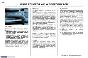 owners manual Peugeot 406 - year of production: 1995, 1996, 1997, 1998, 1999, 2000, 2001, 2002, 2003, 2004 - Peugeot 406 instrukcja obslugi PL
