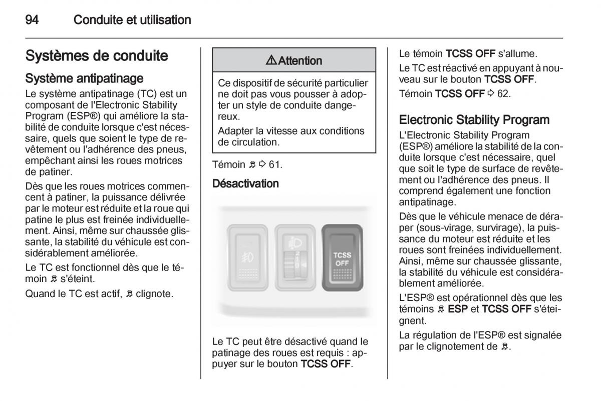 Le système antipatinage (TC) est unne doit pas vous pousser à adop‐Témoin TCSS OFF 3 62.