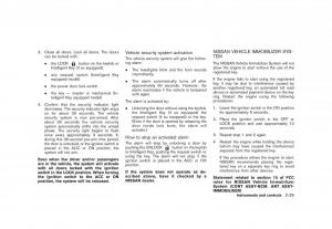 3.Close all doors. Lock all doors. The doorsVehicle security system activationNISSAN VEHICLE IMMOBILIZER SYS-