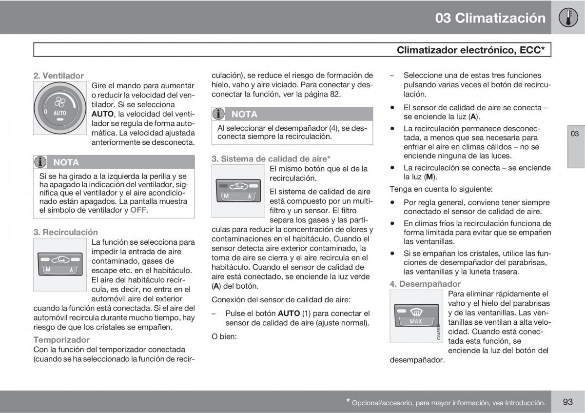 riesgo de que los cristales se empañen.sensor de calidad de aire (ajuste normal).tanillas se ventilan a alta velo-