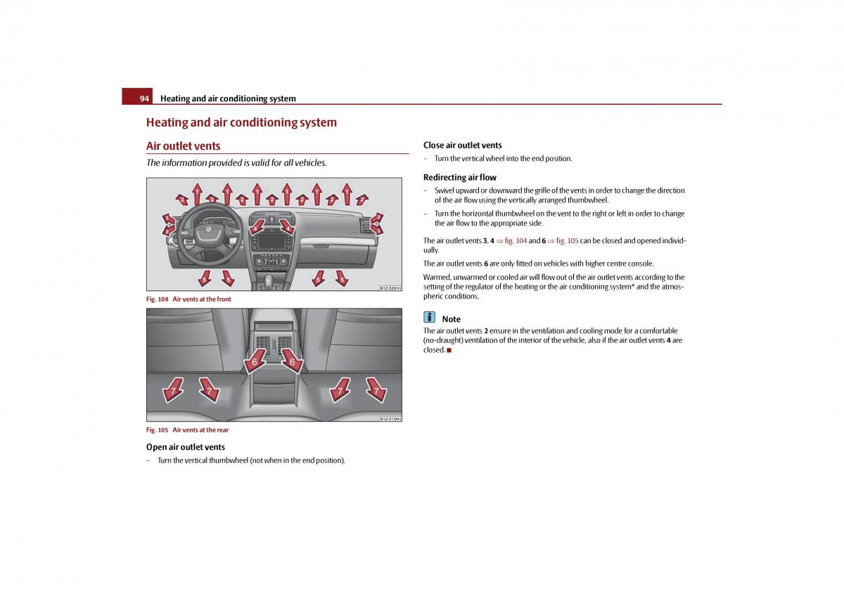 The air outlet vents 3, 4 fig. 104 and 6 fig. 105 can be closed and opened individ-