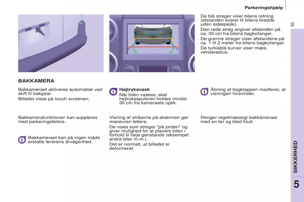 Bakkamerafunktionen kan suppleres Visning af striberne på skærmen gør Rengør regelmæssigt bakkameraet