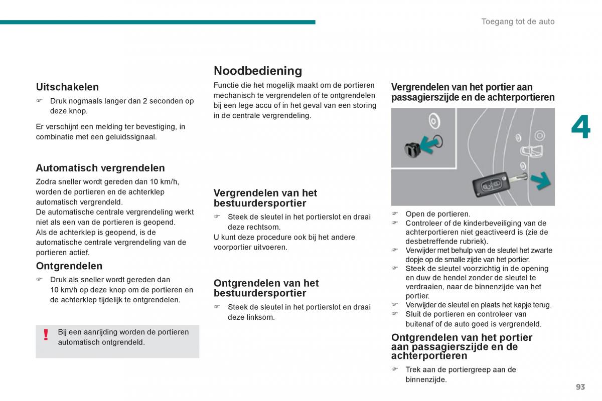 automatische centrale vergrendeling van de voorportier uitvoeren. desbetreffende rubriek).