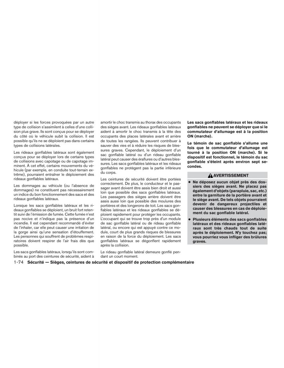 1-74 Sécurité — Sièges, ceintures de sécurité et dispositif de protection complémentaire