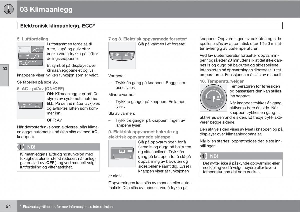 03 klimaanleggpanelet og lys i Intensiteten på oppvarmingen tilpasses til utet-