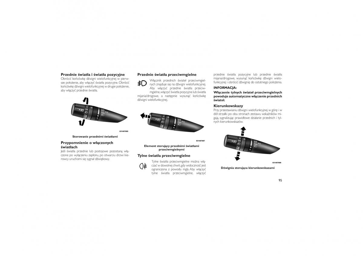 końcówkędźwigniwielofunkcyjnejwdrugiepołożenie,Aby włączyć przednie światła przeciw-INFORMACJA: