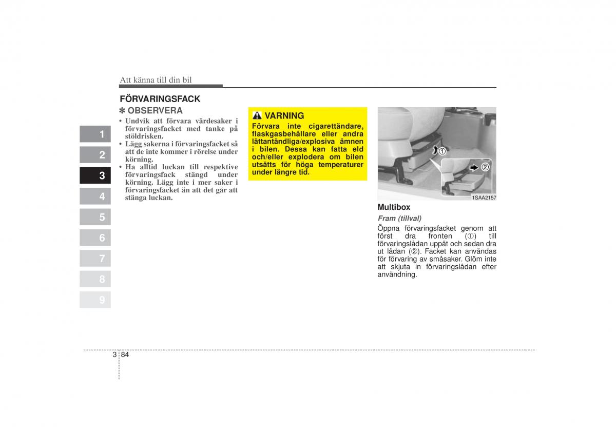 Lägg sakerna i förvaringsfacket sålättantändliga/explosiva ämnen