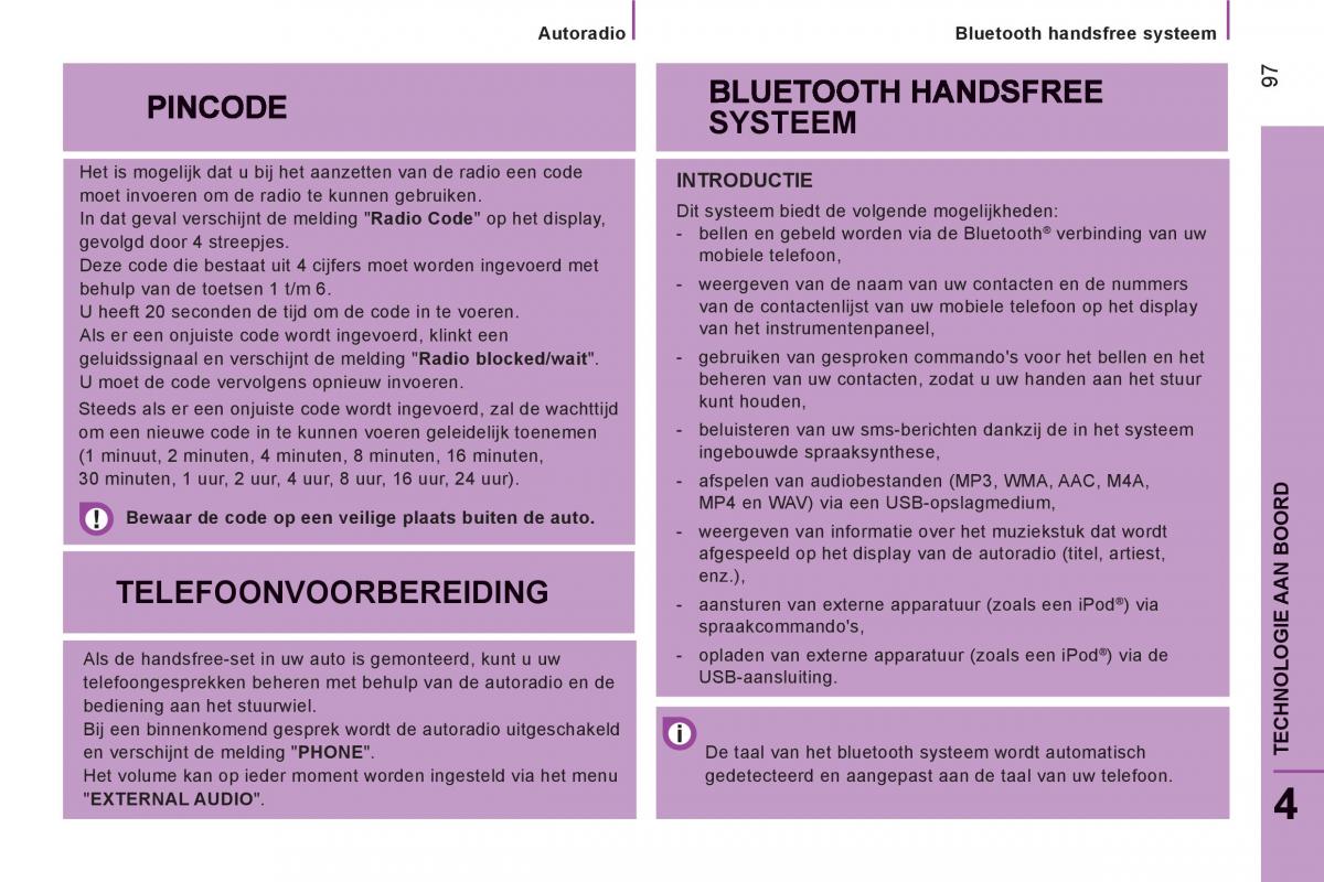 In dat geval verschijnt de melding " Radio Code " op het display, Dit systeem biedt de volgende mogelijkheden: