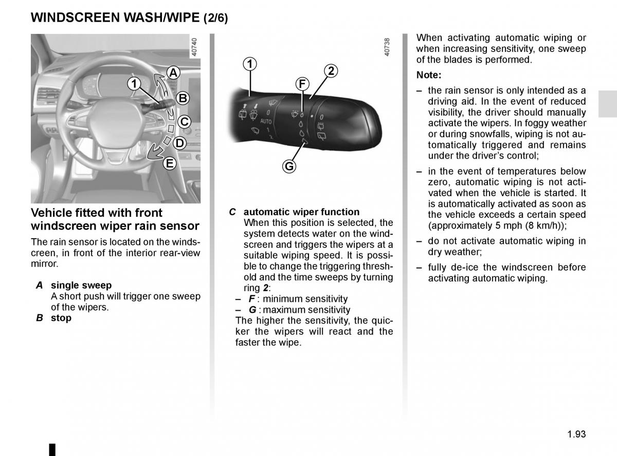 The rain sensor is located on the winds-screen and triggers the wipers at a – do not activate automatic wiping in