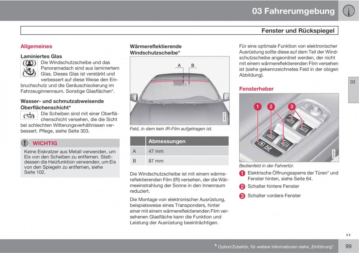 Seite 102. Die Windschutzscheibe ist mit einem wärme-Elektrische Öffnungssperre der Türen* und