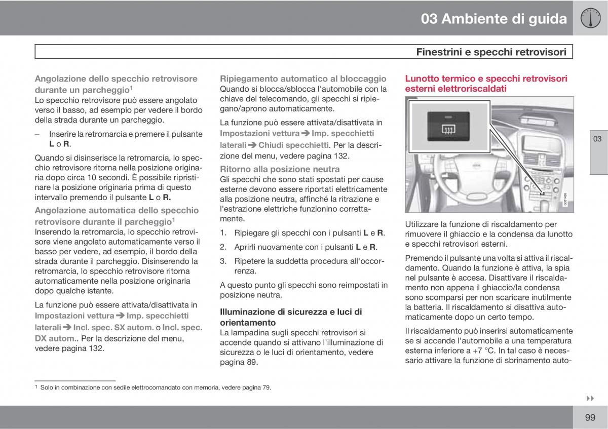 1 Solo in combinazione con sedile elettrocomandato con memoria, vedere pagina 79.